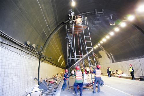 由于隧道機電改造提升涉及多處高空作業(yè),加上施工環(huán)境差、時間緊等因素,該公司特別成立黃土嶺隧道整治工作領導小組,下設綜合協(xié)調(diào)、路面、隧道、監(jiān)督、安全保暢五個工作組,及時組織協(xié)調(diào)解決工程推進過程中出現(xiàn)的各種問題。綜合監(jiān)督組聯(lián)合工程養(yǎng)護部人員,時刻駐扎在施工現(xiàn)場,監(jiān)督施工安全、質(zhì)量和進度,協(xié)調(diào)施工相關問題。公司特別制定了值班制度,公司領導輪流蹲點檢查指導,高管、安保人員一有空就深入工地現(xiàn)場,一遍遍地檢查,一次次地督促落實各項安全生產(chǎn)工作,確保安全隱患零漏洞。