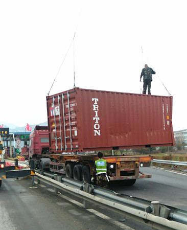 12月15日10:10分左右,一輛車牌為浙B88C06的集裝箱車在臺州南副站選擇出口車道時,因變道和出口運載汽車的長掛車發生碰撞,使得未鎖牢的集裝箱箱體甩落下來,砸到護欄及進口一輛正在通行的貨車車頭,造成護欄變形、貨車車頭受損嚴重,所幸無人員受傷。