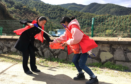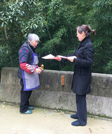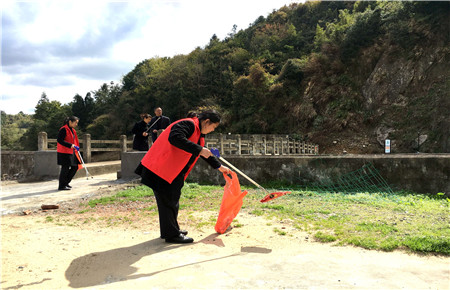 圖為女職工向當地老人宣傳清明文明祭掃 然而,女職工們卻不“安分守己”,以這樣的方式來慶祝自己的節(jié)日:她們兵分二路,一路擔起森林防火宣傳員,向過往群眾發(fā)放《清明文明祭掃和森林防火倡議書》,并對上了年紀的村民耐心講解倡議書內容,將臺州高速的文明服務從工作中延伸到了生活中。一路環(huán)繞水庫去清理其邊上的垃圾,一上午下來,收獲還真不少,共清理廢紙、飲料罐、塑料袋等廢棄物若干袋,在打造“生態(tài)文明”中率先垂范,擔其責,盡其力。
