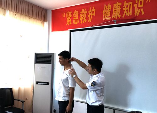圖為授課現(xiàn)場 授課老師向水平為大家講述了現(xiàn)場心肺復(fù)蘇術(shù):判斷呼吸→高聲呼救→擺體位→打開氣道→人工呼吸及如何進(jìn)行按壓與吹氣,隨后他授以簡單的醫(yī)學(xué)理論知識,對高血壓、心臟病、糖尿病等疾病的預(yù)防作了普及。當(dāng)談及上班族普遍面臨的不樂觀的嚴(yán)峻現(xiàn)實(shí):受肩周炎、頸椎病、腰椎間盤突出等職業(yè)病困擾時,向老師以現(xiàn)場演示的方式教大家?guī)渍袀鹘y(tǒng)的中醫(yī)方法——穴位按摩,鼓勵大家自己動手,通過按摩這種最直接的方法,緩解不適。