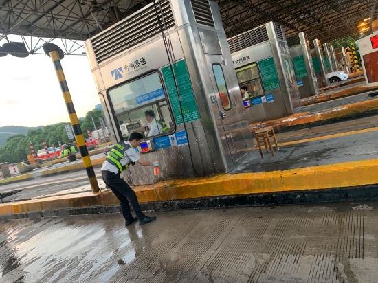 圖為工作人員打掃車道衛(wèi)生 此次環(huán)境衛(wèi)生大掃除本著徹底清理、不留死角的原則,以班組為單位,細分責任區(qū),明確保潔要求,限時清理,全所員工充分發(fā)揚不怕苦、不怕累的精神,重點對收費站內(nèi)外廣場、車道、崗亭、島頭、邊溝、標志標牌等區(qū)域及設(shè)施設(shè)備進行了一次深度清潔。