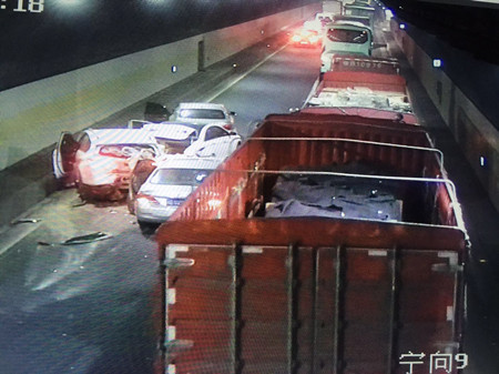 12月22日下午3:00,黃土嶺寧向隧道出口外,因兩輛大貨司機在行駛途中產(chǎn)生摩擦,不顧他人安危在川流不息的高速車道上大打出手,其中一名司機還在車道上逼停另外一輛大貨車,造成后續(xù)車輛被堵在隧道內,間接導致四輛轎車追尾。