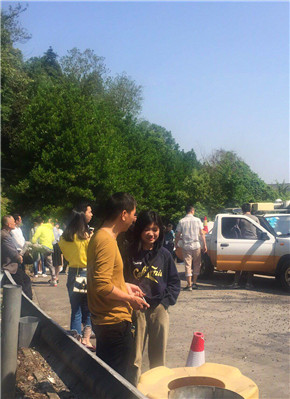 見狀,巡邏車馬上開啟預警模式,指揮大客車緩慢駛入北廣場。隊長李新波詢問原因得知,浙J**123是椒江開往楠溪江的旅游包車,途中發動機故障,失去動力,車子開不了,現正在聯系公司,讓公司派車。但車子停在應急車道,行人肆意穿越隔離帶很危險,高速公路車多速度快,隨時可能發生意外。對此,執勤隊員當即帶領乘客轉移安全地帶等待,告知他們在高速公路上不得隨意穿行。