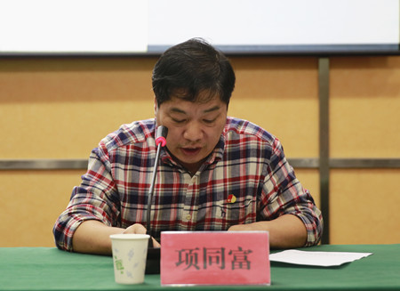 圖為安全總監(jiān)項同富傳達市長張兵在安全生產(chǎn)委員會會議上的重要講話精神