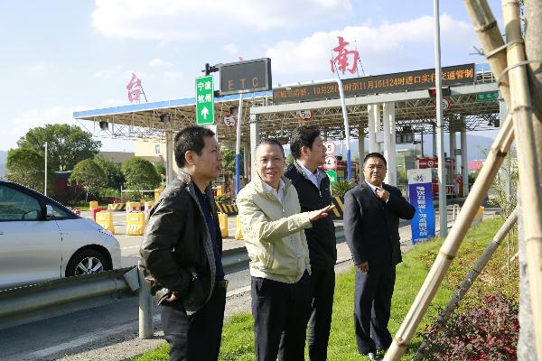 圖為集團(tuán)副董事長、總經(jīng)理張建平在臺州南收費所主站考察協(xié)調(diào)院橋互通綠化、養(yǎng)護(hù)等工作