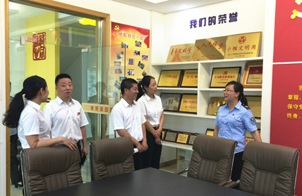 圖為參觀學習現場 在章安中心所所長吳玲珍的帶領下,大家先后參觀了章安收費所所文化建設、黨建活動室、員工學習室等,隨后在會議室展開座談交流,重點就收費所稽查考核機制、稽查人員安排、綠農車檢查等工作中遇到的熱點難點問題和解決方法進行了磋商探討。 通過學習交流,大家開闊了視野、拓寬了思路,意識到可以借鑒臺金公司較成熟的稽查考核經驗,并結合本部門實際,優化稽查機制、提高稽查效率,進一步提升各收費所的稽查考核管理水平。 葉茂