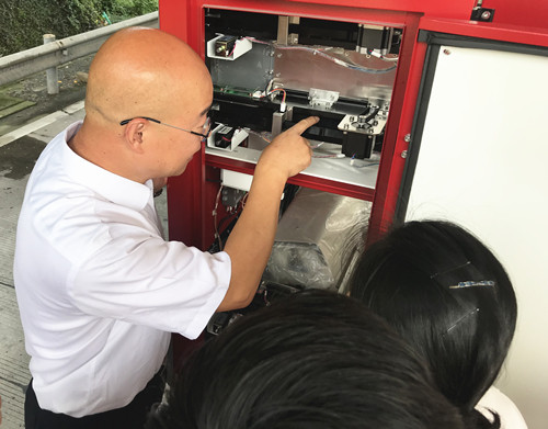 上圖為實(shí)踐培訓(xùn)現(xiàn)場 此次安裝,臺(tái)州南和臨海南兩個(gè)收費(fèi)所皆是初次接觸自動(dòng)發(fā)卡機(jī),對(duì)發(fā)卡機(jī)運(yùn)作流程和使用操作都較為陌生,但兩所未雨綢繆,提前組織發(fā)卡機(jī)操作流程學(xué)習(xí)和培訓(xùn)。其中臺(tái)州南收費(fèi)所召集所有班組長及行政人員赴臺(tái)州收費(fèi)所“取經(jīng)”,虛心向他們學(xué)習(xí)發(fā)卡機(jī)卡票安裝和使用、常見故障排除和恢復(fù)方法。臺(tái)州收費(fèi)所不僅向他們仔細(xì)傳授了卡機(jī)裝卡、裝票詳細(xì)步驟及技巧,還將他們近一年運(yùn)行下來的一些排故經(jīng)驗(yàn)及特情處理毫無保留地進(jìn)行分享,以幫助他們少走“彎路”,盡快上崗。臨海南收費(fèi)所湯明漲,因?yàn)橹坝惺褂眠^自動(dòng)發(fā)卡機(jī)經(jīng)驗(yàn),對(duì)卡機(jī)整套工作流程和使用操作都較為熟悉,就自告奮勇當(dāng)起培訓(xùn)師,帶領(lǐng)所內(nèi)人員下到現(xiàn)場,親自演示發(fā)卡機(jī)操作步驟,詳細(xì)講解卡機(jī)內(nèi)部各項(xiàng)功能鍵使用及說明,并一一解答大家提出的疑問。