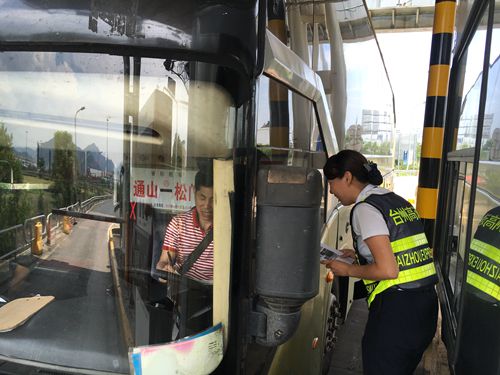 在臺州南收費所車道里,收費班長辛舟飛正細致耐心地向客車司機進行政策宣傳和解釋。 根據(jù)《浙江省交通運輸廳 浙江省物價局 關于延長20座、40座客車省內(nèi)高速公路車輛通行費優(yōu)惠期的通知》(浙交〔2017〕41號)文件精神,自2018年8月1日起,20座、40座ETC客車省內(nèi)高速公路通行優(yōu)惠期(2012年8月1日至2018年7月31日)結束,屆時,收費站將統(tǒng)一按現(xiàn)行高速公路客車車輛通行費車型分類及收費標準執(zhí)行。