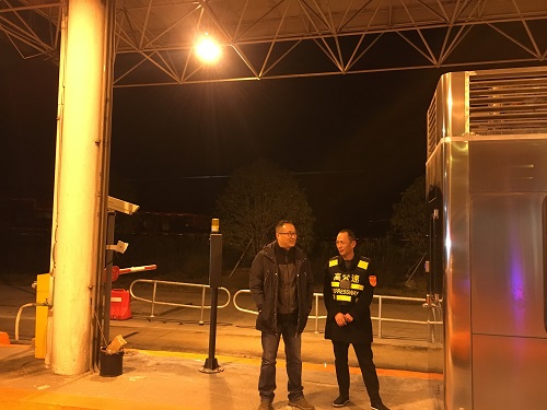 圖為集團(tuán)副總經(jīng)理章海峰深夜到收費(fèi)所檢查 章海峰一到車道就向堅(jiān)守崗位的員工送上節(jié)日的祝福,對(duì)他們盡職盡責(zé)、樂(lè)于奉獻(xiàn)的態(tài)度給予充分肯定,隨后詳細(xì)詢問(wèn)了近段時(shí)間車流量、節(jié)假日通行憑證的使用、收費(fèi)設(shè)施運(yùn)行、人員安排等情況。 章海峰指出,雖然沿線路段流量較同期有所下降,但在節(jié)假日和春運(yùn)雙重任務(wù)前,還要面臨各種不確定因素,全體人員依然不能掉以輕心,要善于分析通行過(guò)程的異常現(xiàn)象,并早作應(yīng)急預(yù)案;對(duì)長(zhǎng)途客車和危化品車輛要嚴(yán)格把關(guān),認(rèn)真執(zhí)行指揮中心的通行時(shí)間;春節(jié)期間氣溫起伏大,特別在后期受冷空氣影響有降溫天氣,要做好保暖工作,注意出行安全。 章海峰祝福大家過(guò)個(gè)舒心、安全的中國(guó)年! 夏蓮萍