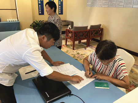 圖為股東在認(rèn)真簽訂股權(quán)轉(zhuǎn)讓協(xié)議