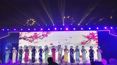 圖為旗袍秀現場 晚會一開場,由椒江區(qū)前所街道前所村(全國文明村)表演的鑼鼓舞《歡慶新時代》馬上將觀眾帶入到熱烈的氣氛中。隨后,各家單位選送的15個節(jié)目以小品、舞蹈等多種形式,展示學習貫徹落實十九大的成績,歌頌新時代黨領導下的新氣象。 公司員工包德福代表公司參加晚會,獨唱歌曲《天際》,其動聽的歌聲贏得了現場觀眾的陣陣掌聲和喝彩。 周茂森