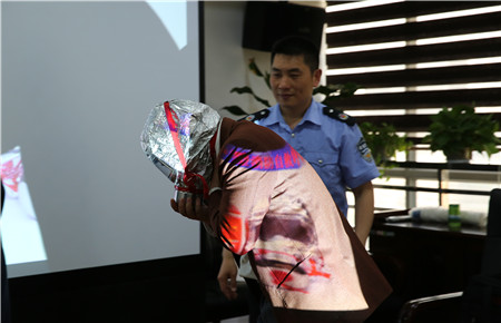 圖為員工學(xué)習(xí)防煙面罩的使用 課上,員工們聽地十分認(rèn)真,并且積極地參與了互動(dòng),學(xué)習(xí)了使用滅火器和佩戴防煙面罩。課后,全體人員還跟著教官手把手學(xué)習(xí)了水帶鋪設(shè)和連接。